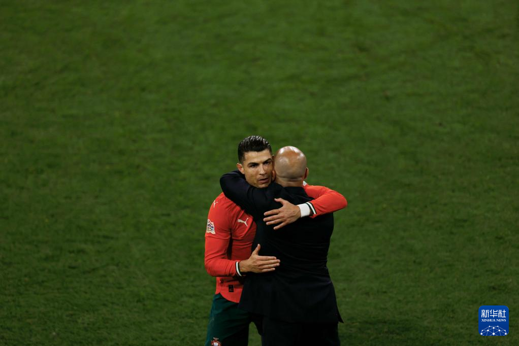 6月8日,葡萄牙队球员克里斯蒂亚诺·罗纳尔多(左)在下场后拥抱主教练罗伯托·马丁内斯。