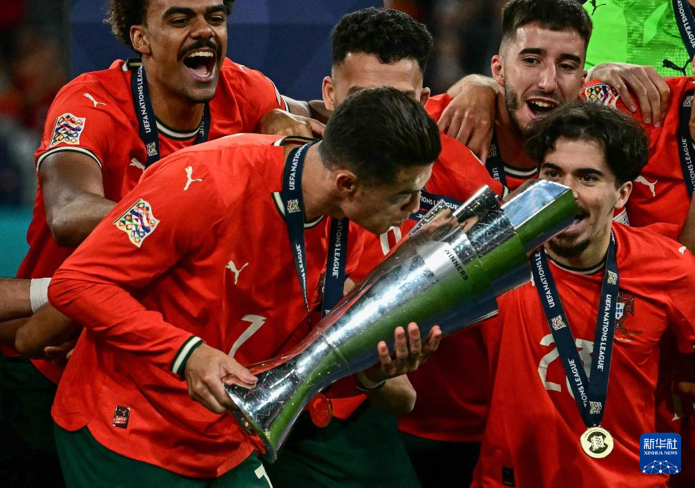 当日,在德国慕尼黑举行的欧国联A级联赛决赛中,葡萄牙队与西班牙队在常规时间和加时赛2比2战平,最终在点球大战中,葡萄牙队5比3击败对手,夺得冠军。