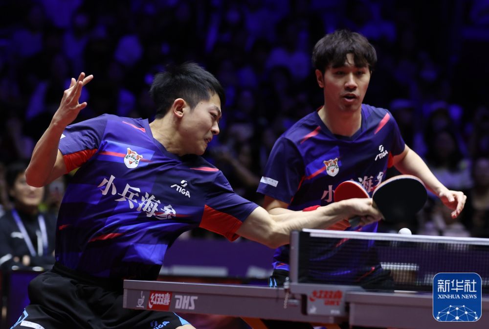 ↑许昕/周恺(右)在比赛中。