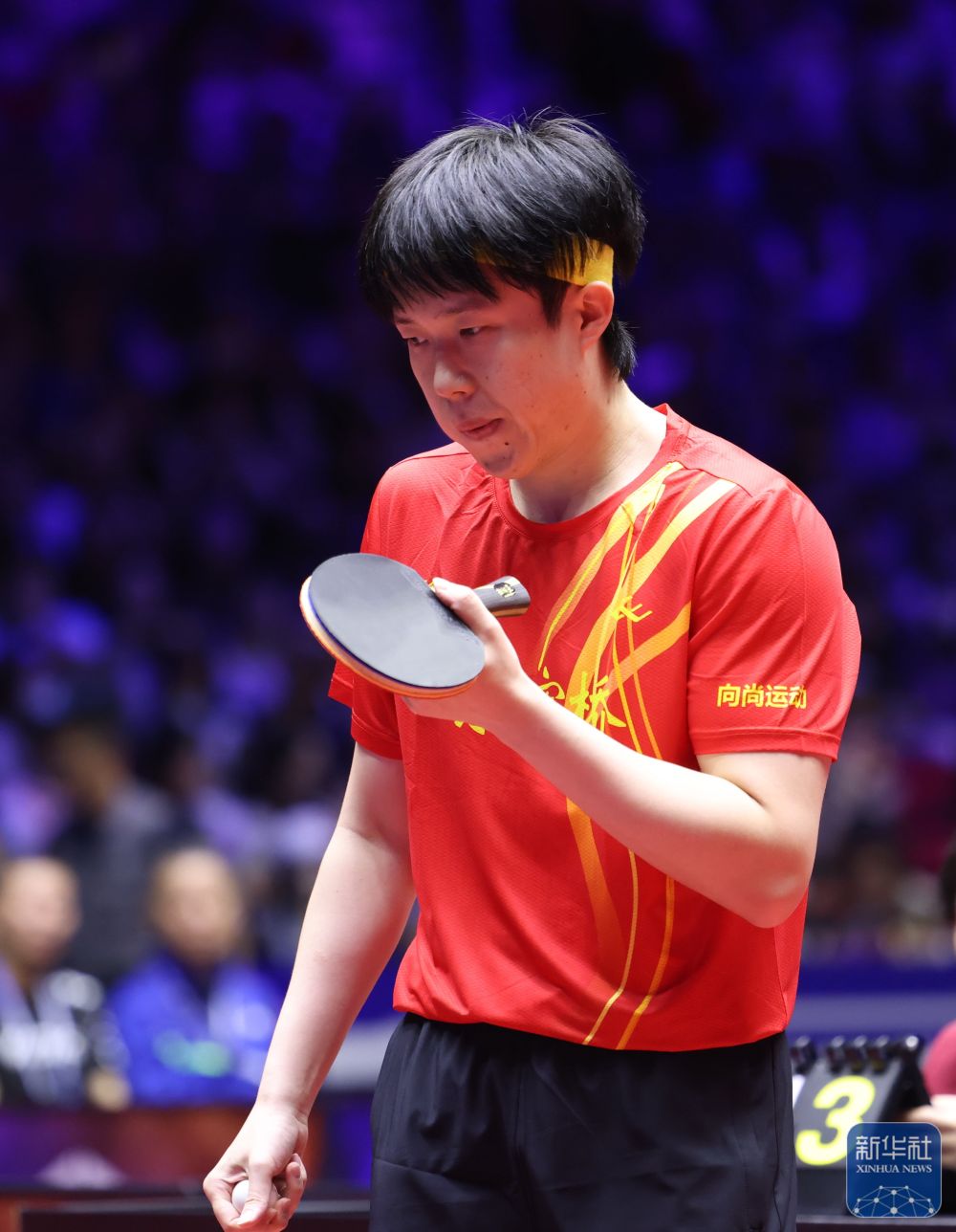 ↑樊振东在比赛前。