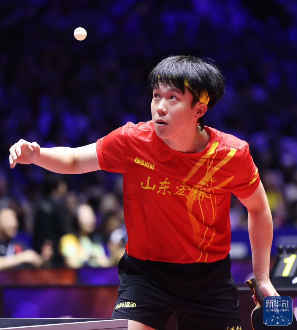 ↑王楚钦在比赛中。