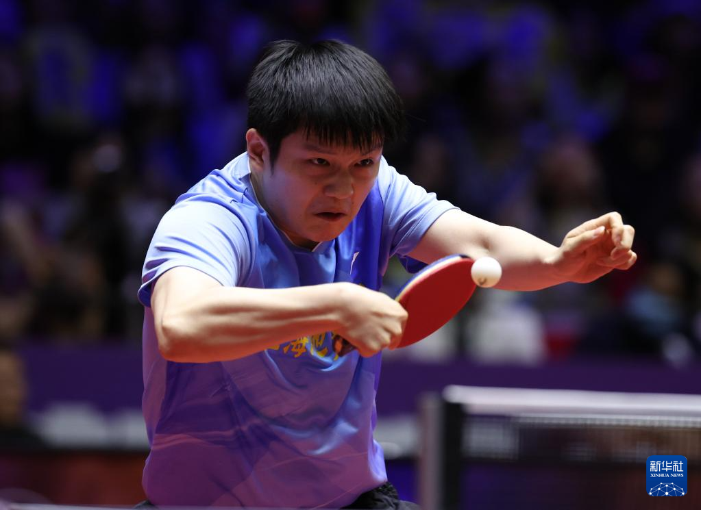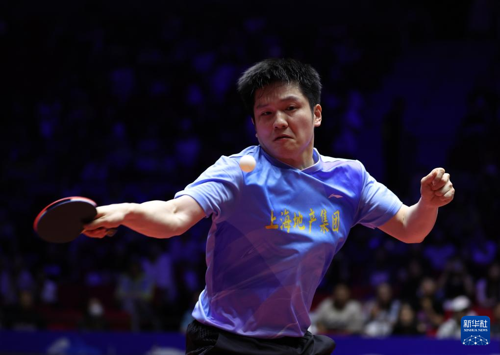 6月9日,上海地产集团队选手樊振东在比赛中回球。他在单打比赛中3比2战胜山东鲁能队选手徐瑛彬。