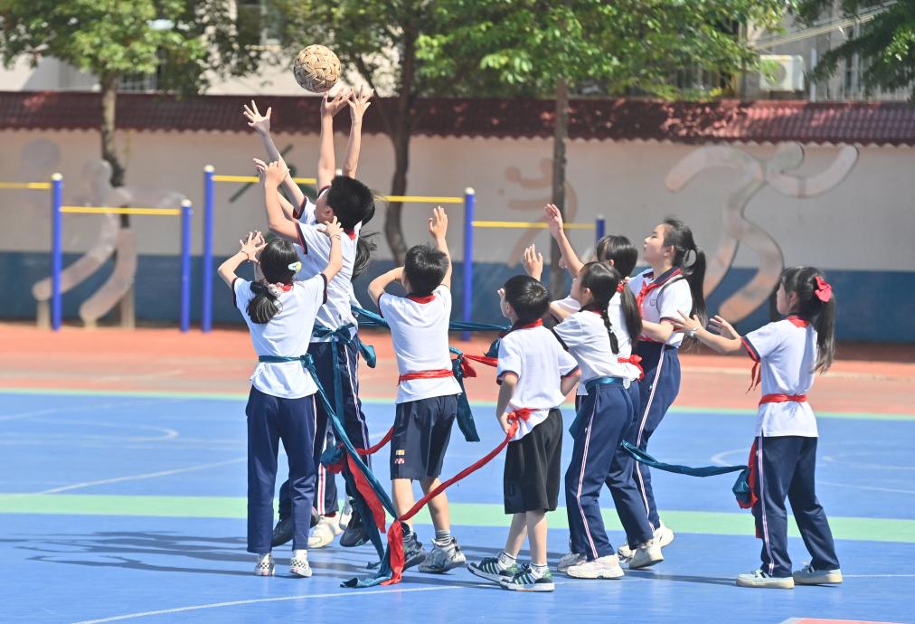 5月13日,学生在大课间打竹球。新华社记者 黄孝邦 摄