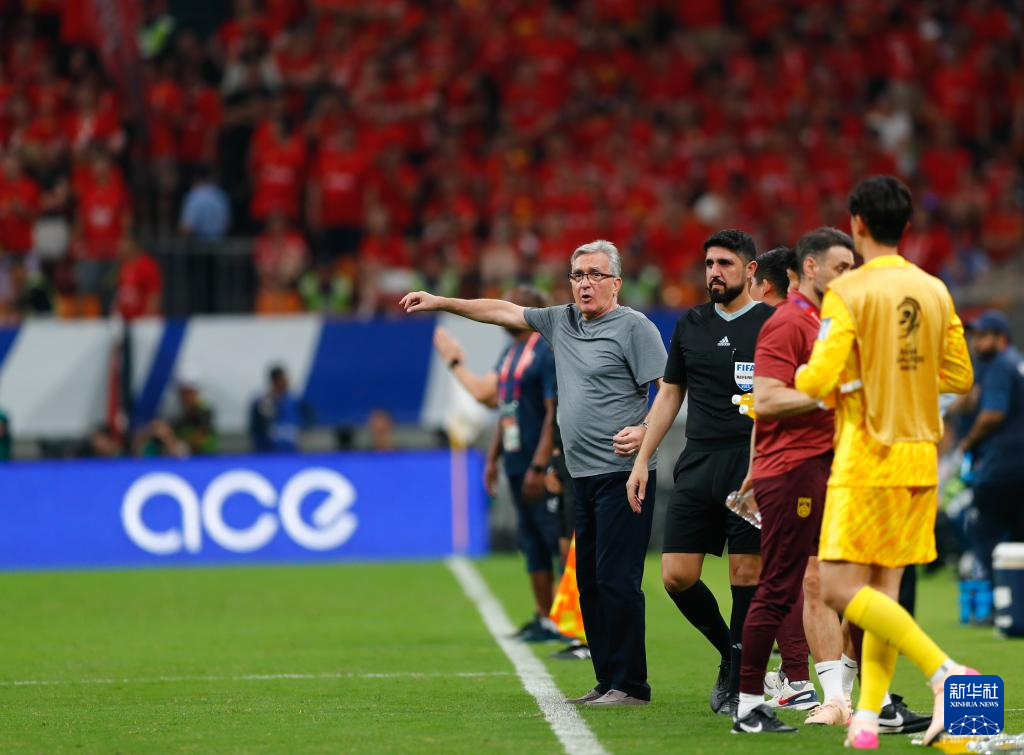 6月10日,中国队主教练伊万科维奇(左一)在场边指挥。
