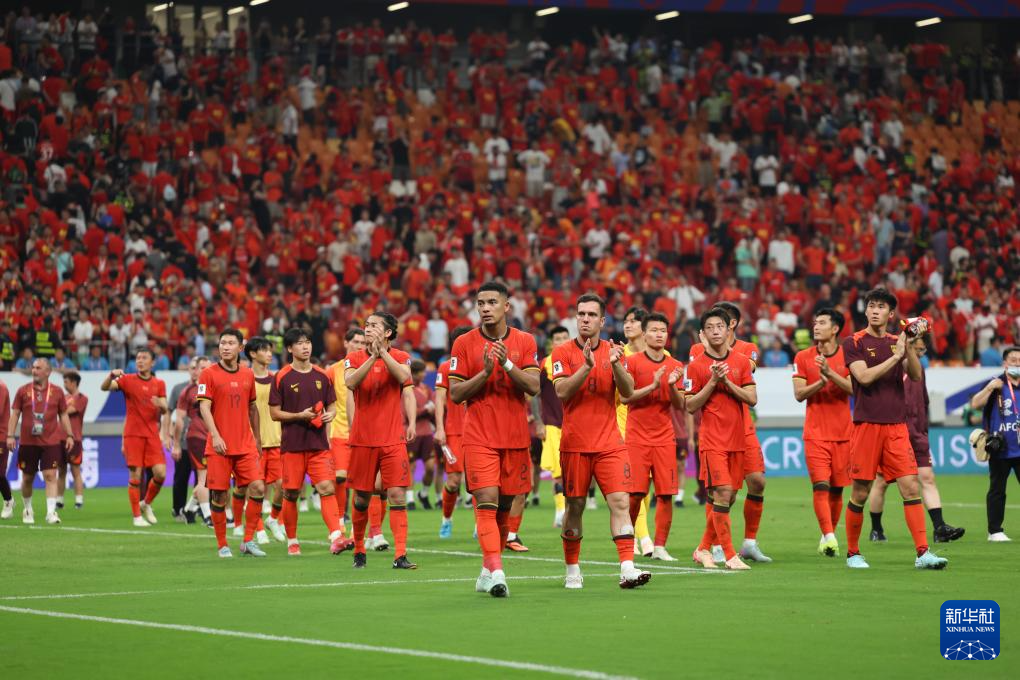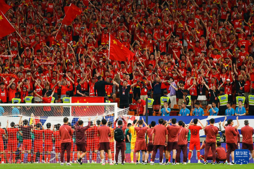 6月10日,中国队成员(下)获胜后向球迷致意。