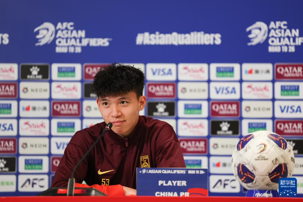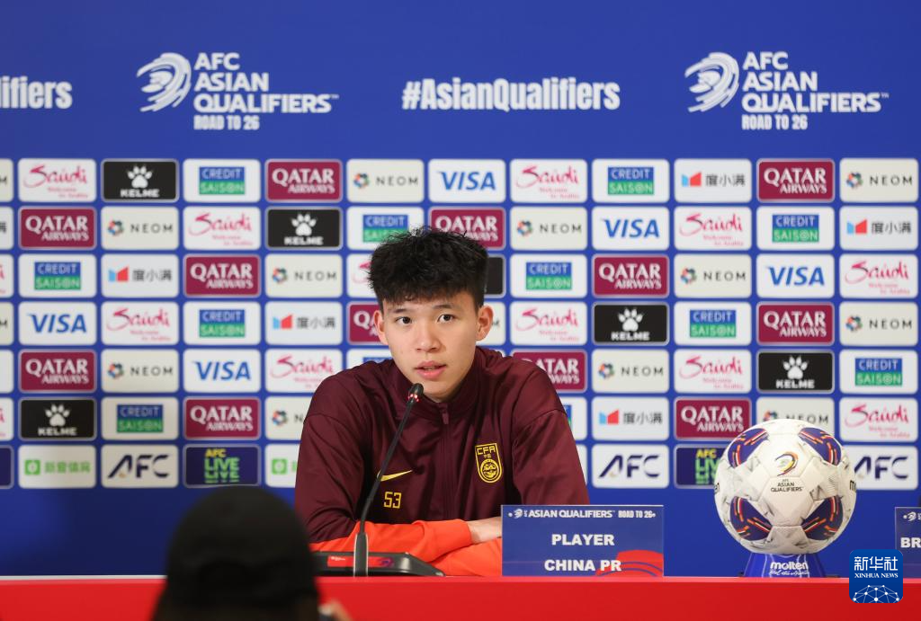 6月10日,中国队球员王钰栋在赛后新闻发布会上。