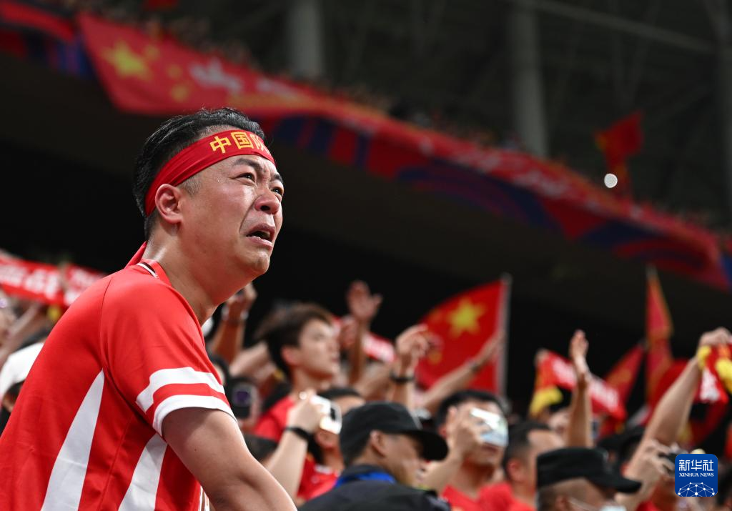 6月10日,一名中国队球迷在比赛后激动落泪。