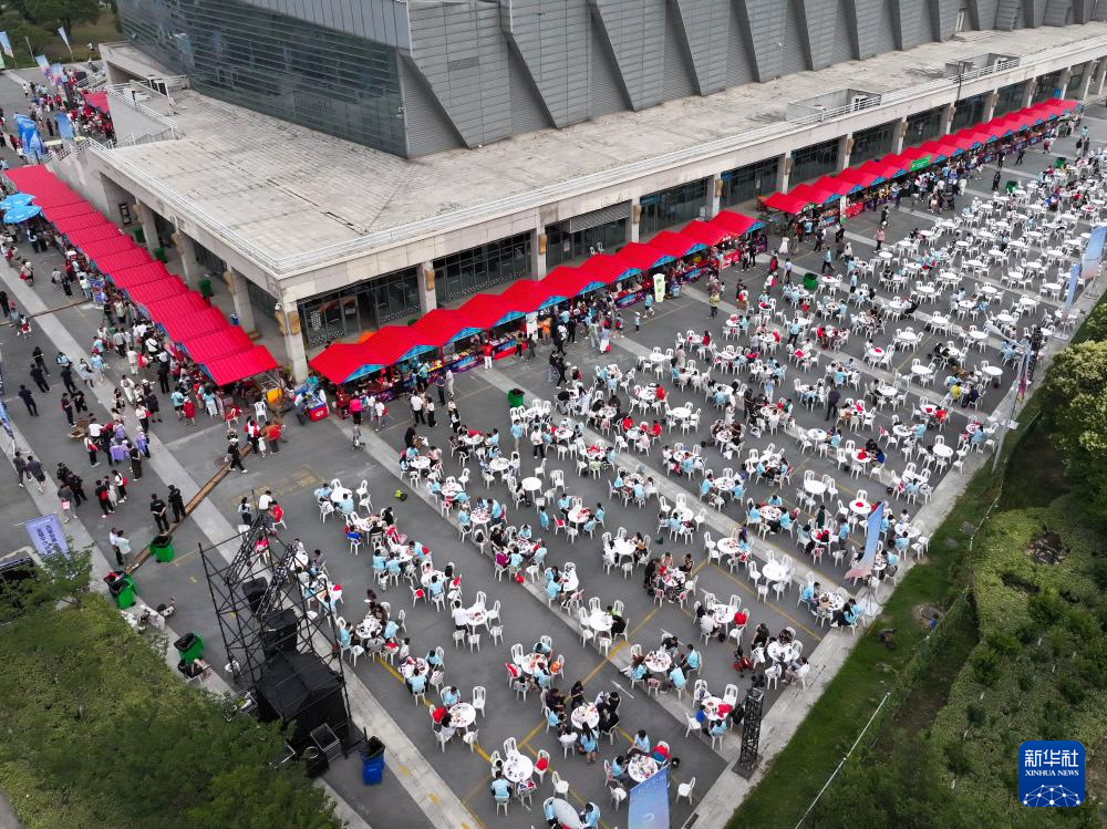 这是6月14日拍摄的江苏淮安“苏超”市集(无人机照片)。