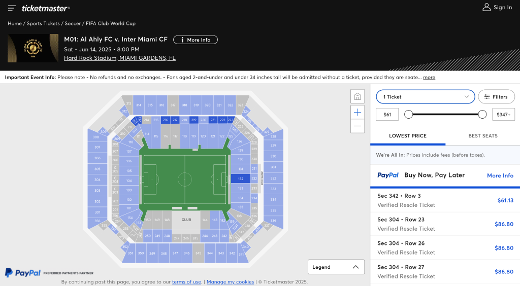 门票也因此受到影响。洛杉矶、迈阿密和西雅图等地的门票销售不佳,非裔和移民社区球迷的现场观赛意愿下降,他们大多因为安保和身份风险选择放弃入场。13日下午记者查看官方二手球票交易平台发现,迈阿密国际对阵开罗国民的揭幕战门票最低仅需61美元(1美元约合7.18元人民币)。