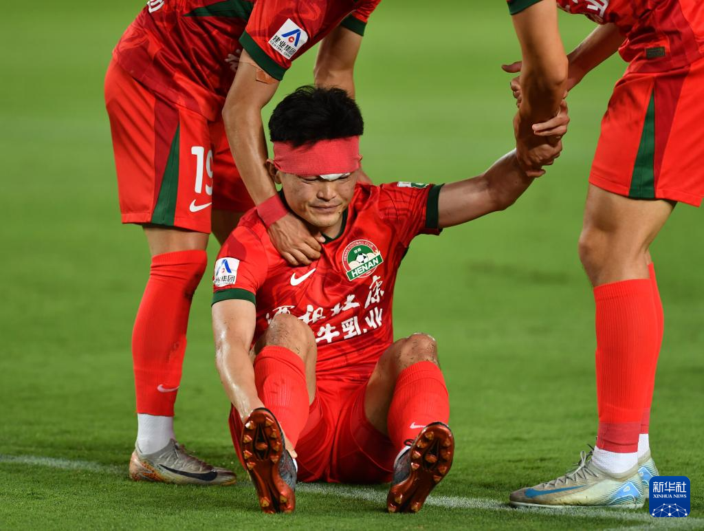 6月14日,河南俱乐部酒祖杜康队球员黄紫昌在比赛中受伤。