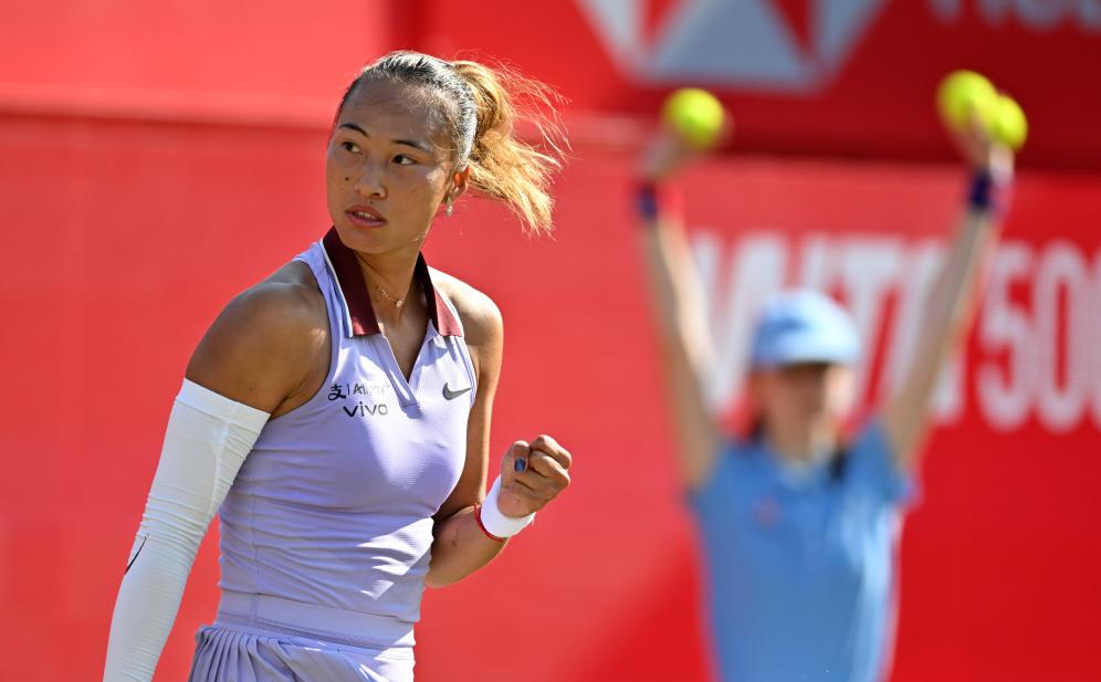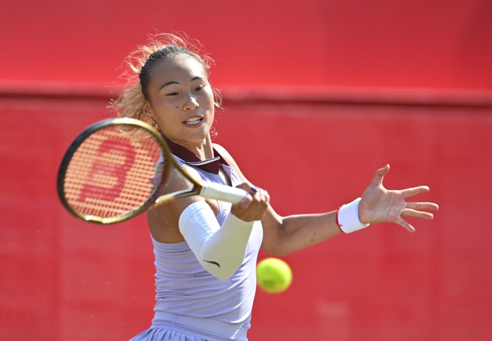 6月14日,郑钦文在比赛中。新华社发(刘颖摄)