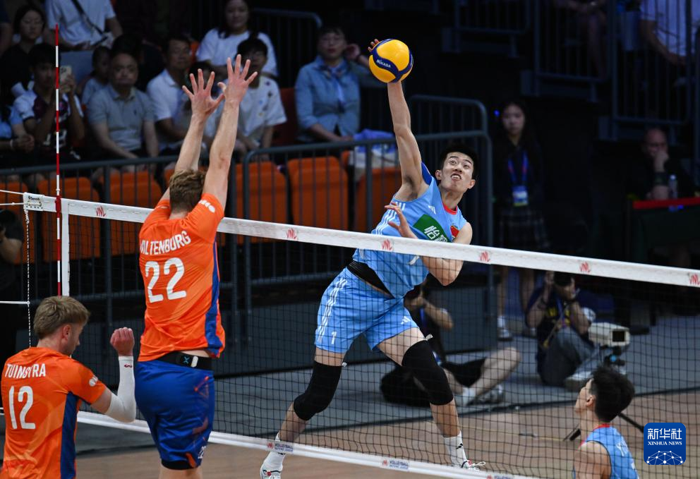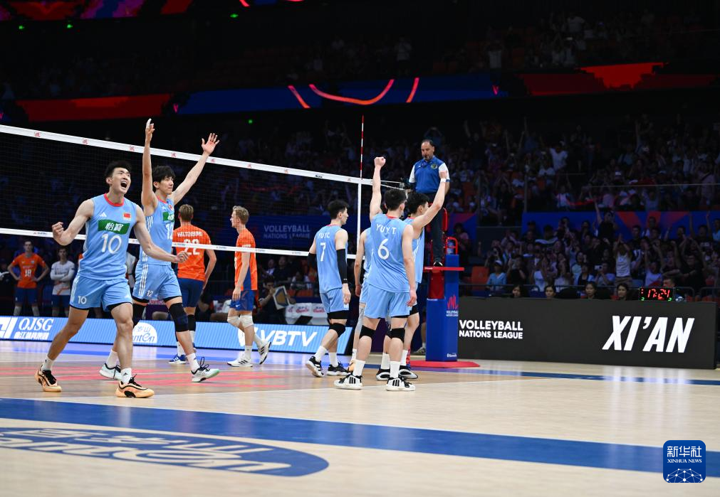 当日,在西安举行的2025世界男排联赛(中国西安站)小组赛中,中国队3比1战胜荷兰队。