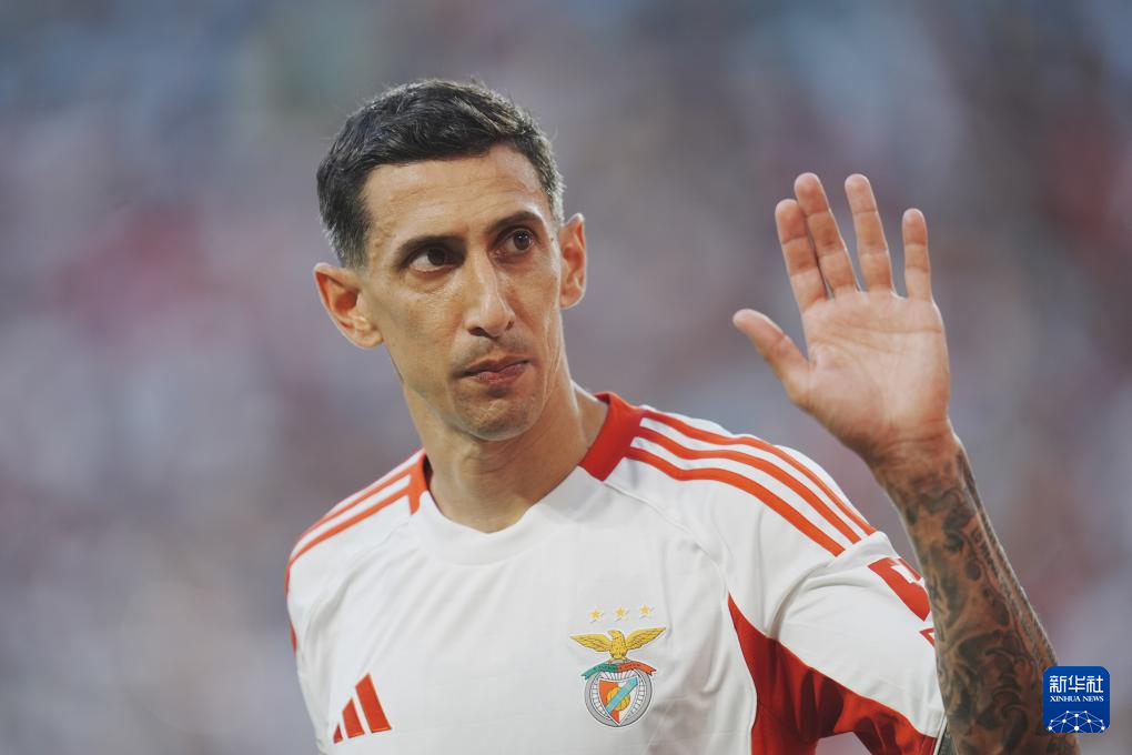 6月16日,本菲卡队球员迪马利亚被替换下场时向球迷致意。