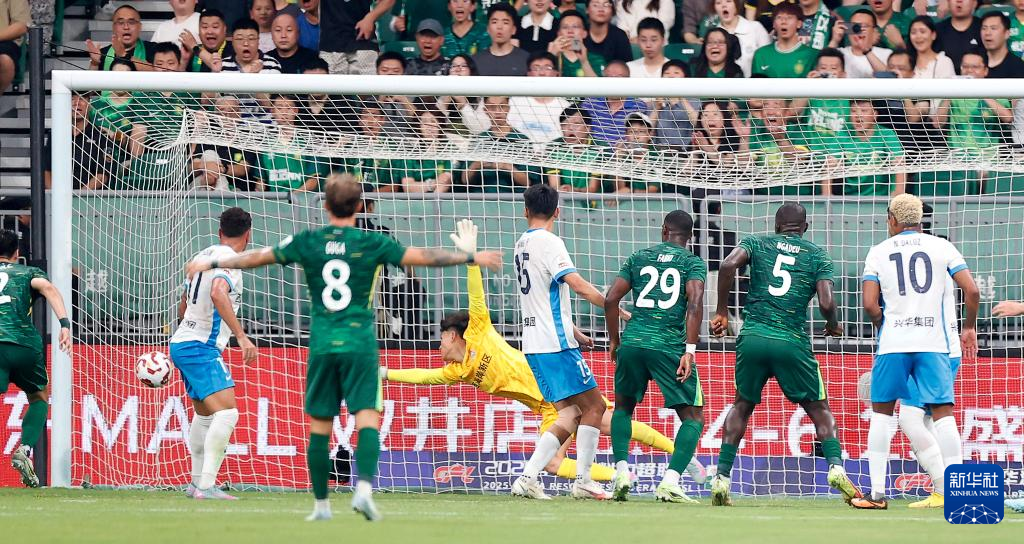 6月17日,北京国安队5号球员恩加德乌头球攻门后造成对方乌龙。