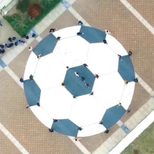 地上的地砖铺成了一个巨大的足球图案