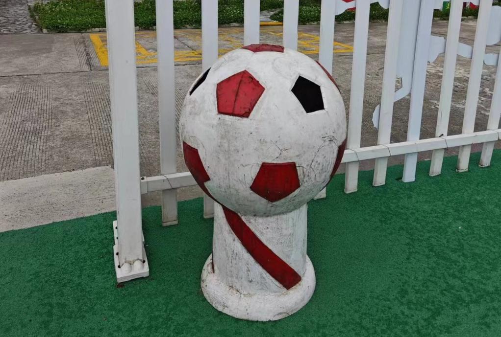 就连垃圾桶也设计成了足球的造型↓