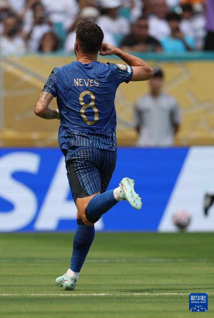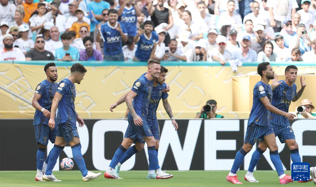 6月18日,利雅得新月队球员在比赛中庆祝队友鲁本·内维斯的进球。新华社记者 黄宗治 摄