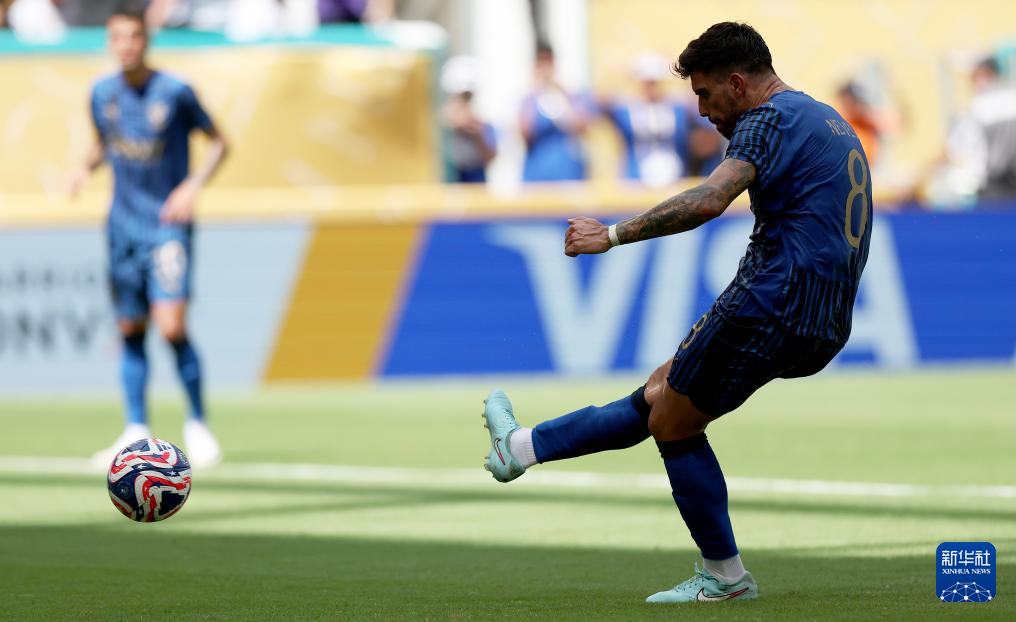 6月18日,利雅得新月队球员鲁本·内维斯在比赛中主罚点球破门。新华社记者 李明 摄