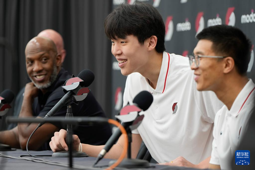 当日,NBA波特兰开拓者队举行新闻发布会,中国球员杨瀚森正式亮相。6月25日,在2025年美职篮(NBA)新秀选拔大会首轮选拔中,波特兰开拓者队用从孟菲斯灰熊队交易得到的第16号签,选中中国球员杨瀚森。