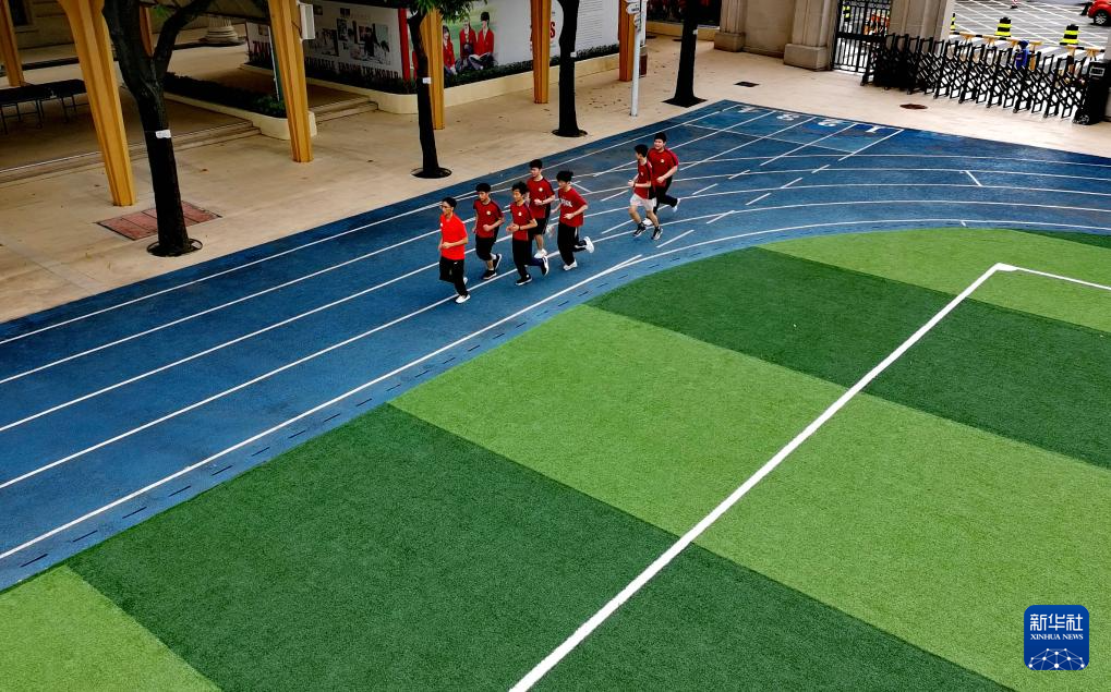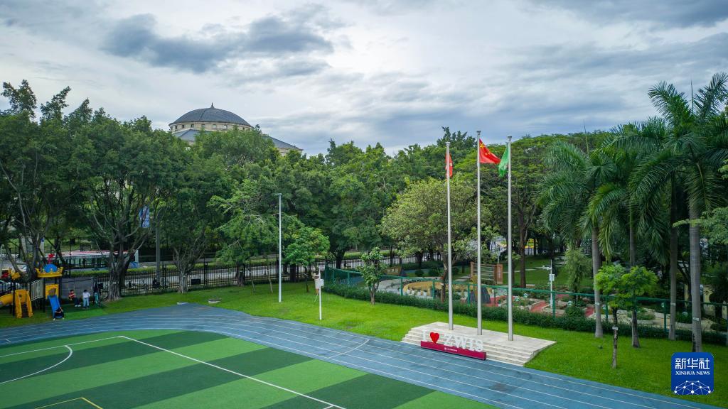图为6月19日拍摄的广州市中黄港澳子弟学校操场(无人机照片)。新华社记者 肖恩楠 摄