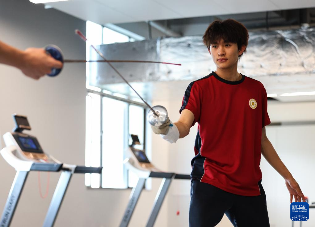 图为广州市中黄港澳子弟学校港籍学生张嗣涛进行击剑训练(6月19日摄)。新华社记者 刘大伟 摄