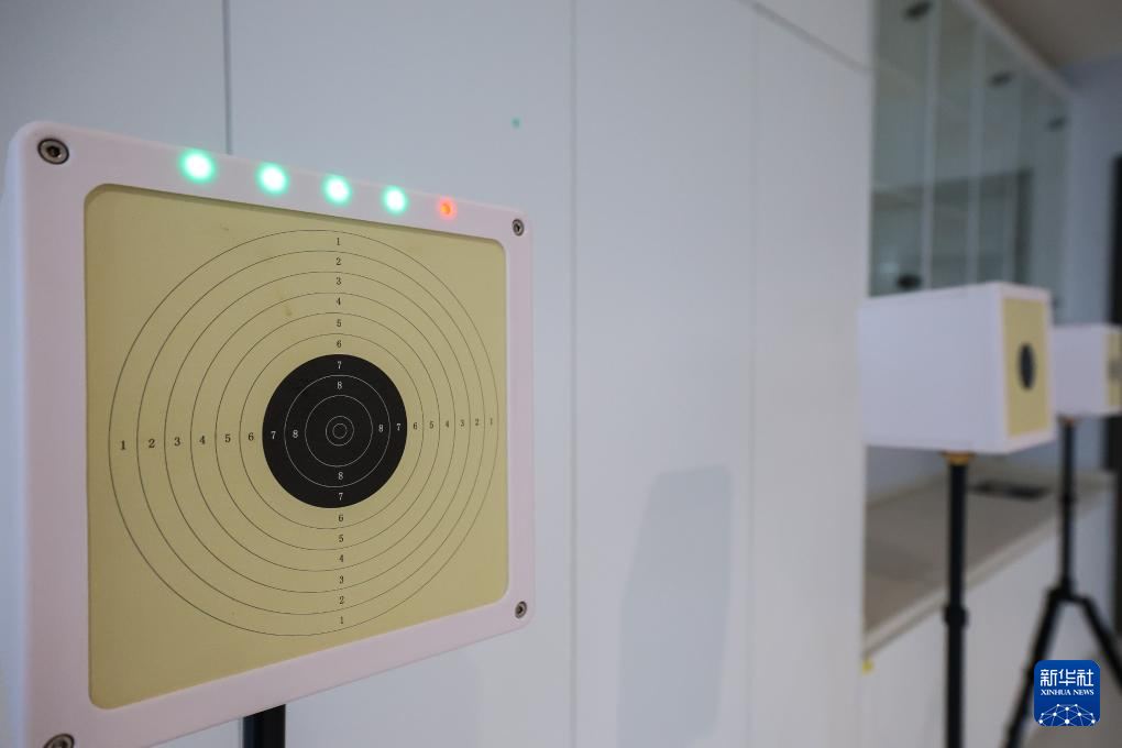 图为在广州市中黄港澳子弟学校运动室,激光射击的电子靶显示出中靶信息(6月19日摄)。新华社记者 刘大伟 摄