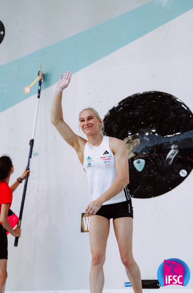 女子方面,有攀岩界“大魔王”之称的斯洛文尼亚名将亚妮娅·加恩布雷特在攀石赛季末复出。巴黎奥运会卫冕后,这位传奇名将把更多精力放在了自然岩壁攀爬上,直到因斯布鲁克站才重回竞技赛场。虽然预赛和半决赛表现一般,但她在决赛中仍然展现了统治力,登顶全部四条决赛线路,以绝对优势夺冠。第二、三名选手均只登顶两条线路。