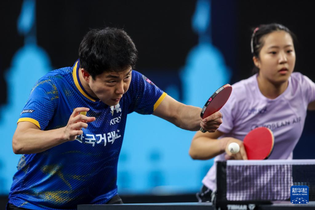6月28日,韩国组合林仲勋(左)/申裕斌在混合双打决赛中。最终,他们3比0战胜中国组合黄友政/陈熠,夺得冠军。