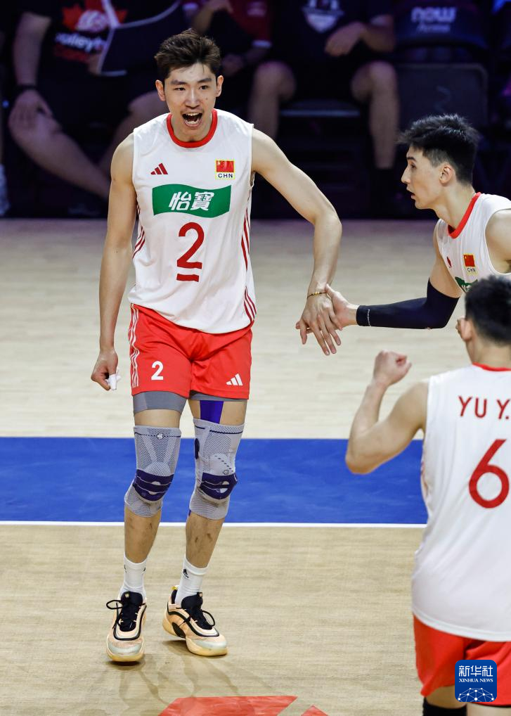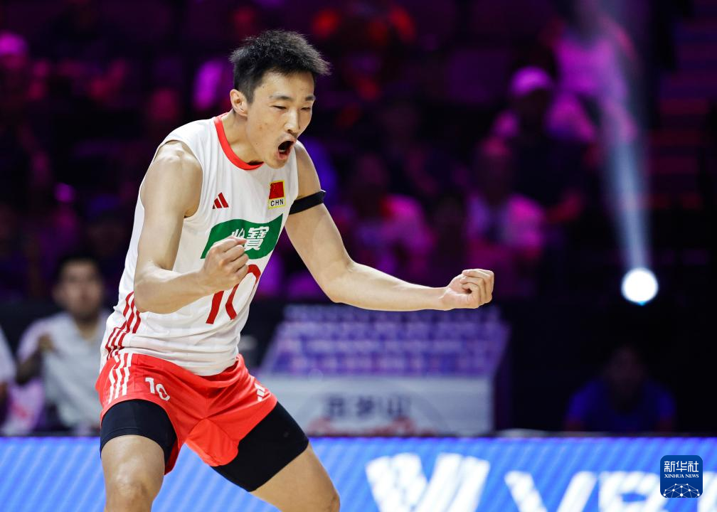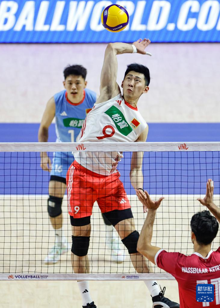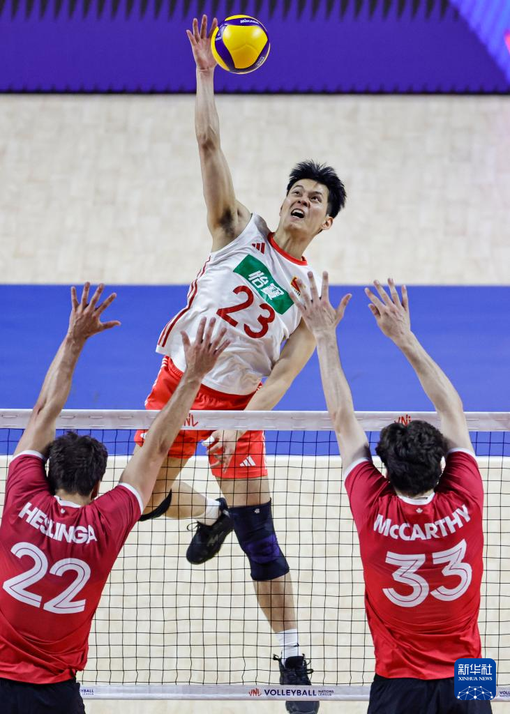 6月29日,中国队球员江川在比赛中扣球。新华社发(乔尔·莱纳摄)