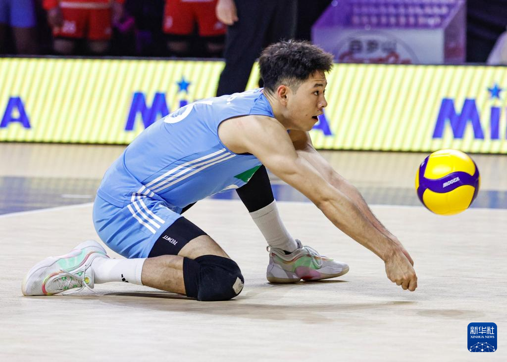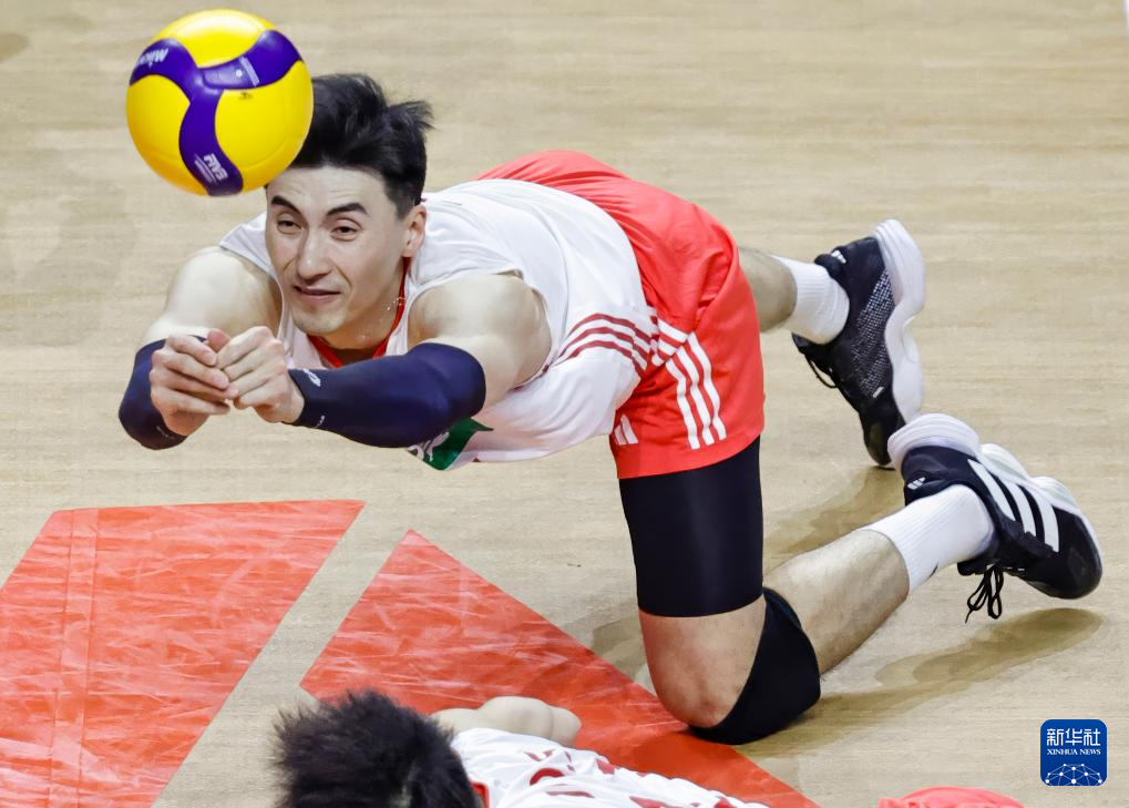6月29日,中国队球员曲宗帅在比赛中接球。新华社发(乔尔·莱纳摄)