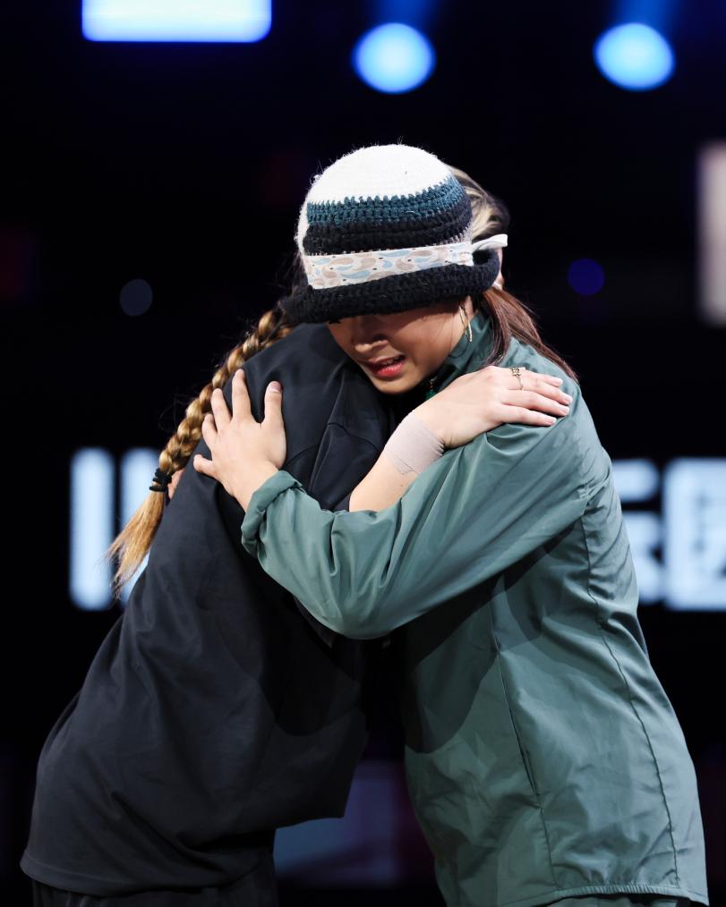 在对决前,站在台下的郭朴反复大口深呼吸,试图平复那颗激烈跳动的心脏。然而,当音乐响起,身体的律动本能接管一切,面对“一姐”的“大招”她也毫不怯场,凭借出色的音乐性、巧妙的套路编排和流畅的技巧动作,最终征服了现场评委,以2:1战胜了曾经仰望的前辈。