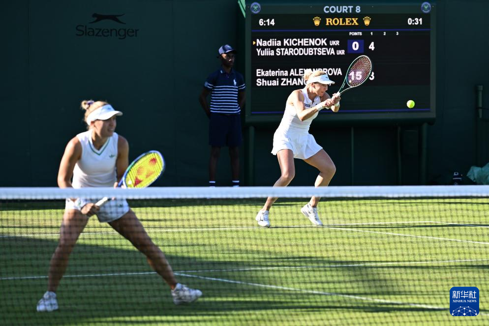 7月2日,斯塔罗杜布采娃/基切诺克(右)在比赛中。新华社记者 赵丁喆 摄