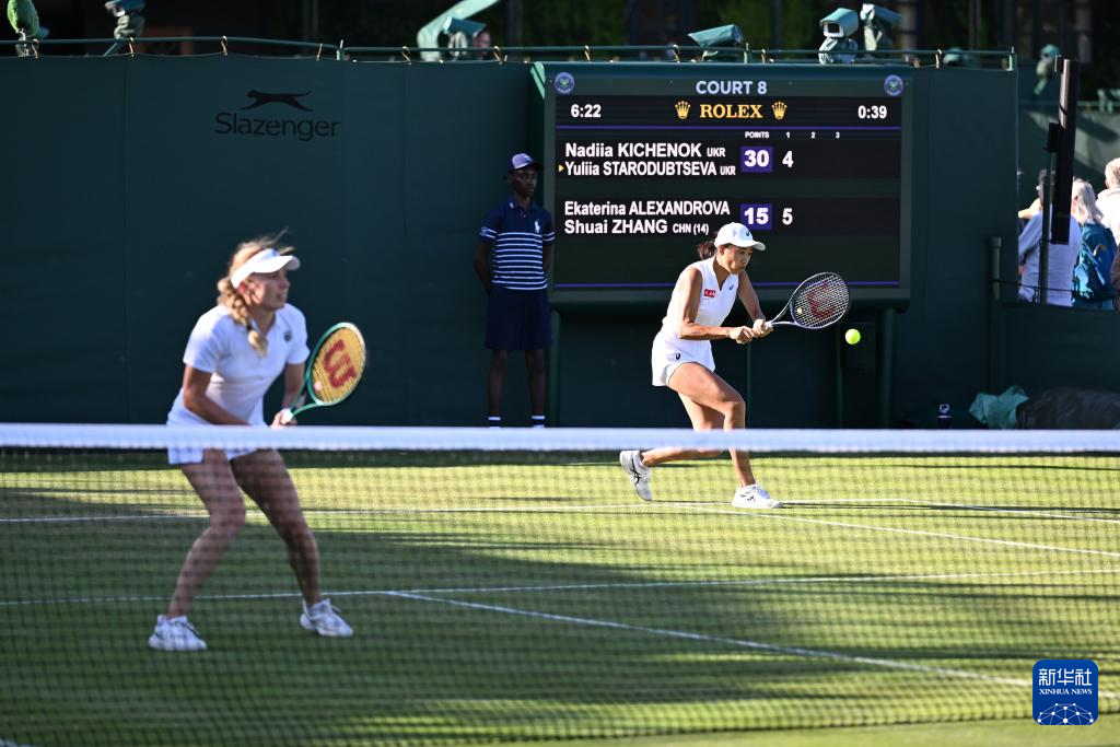 7月2日,张帅(右)/亚历山德罗娃在比赛中。新华社记者 赵丁喆 摄