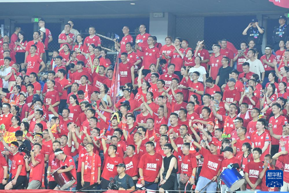 7月6日,常州队球迷为球队加油助威。新华社发(刘臻睿摄)
