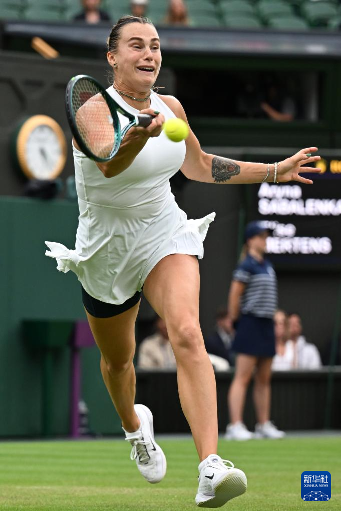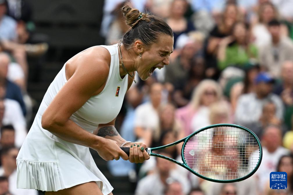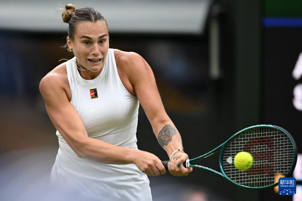 7月6日,萨巴伦卡在比赛中回球。新华社记者 赵丁喆 摄