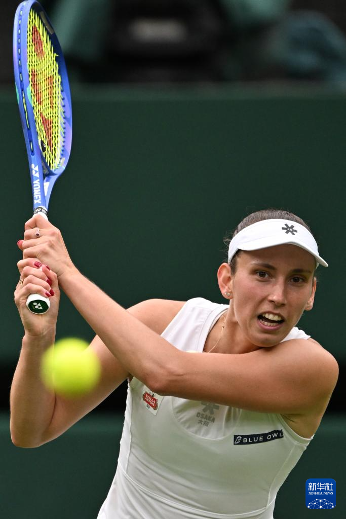 7月6日,梅尔滕斯在比赛中回球。新华社记者 赵丁喆 摄