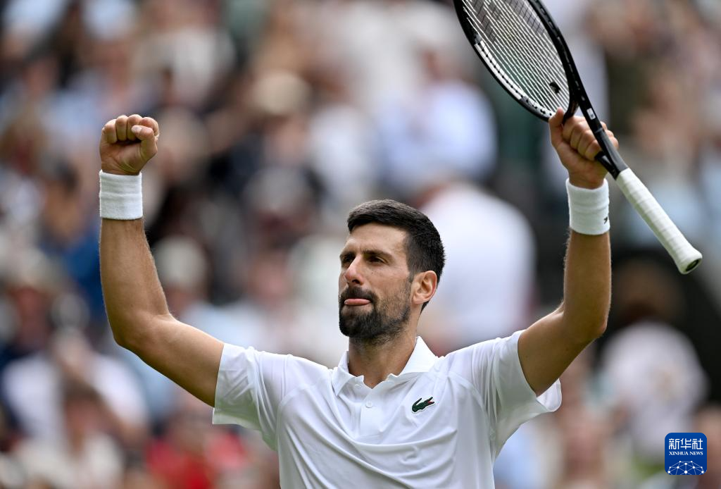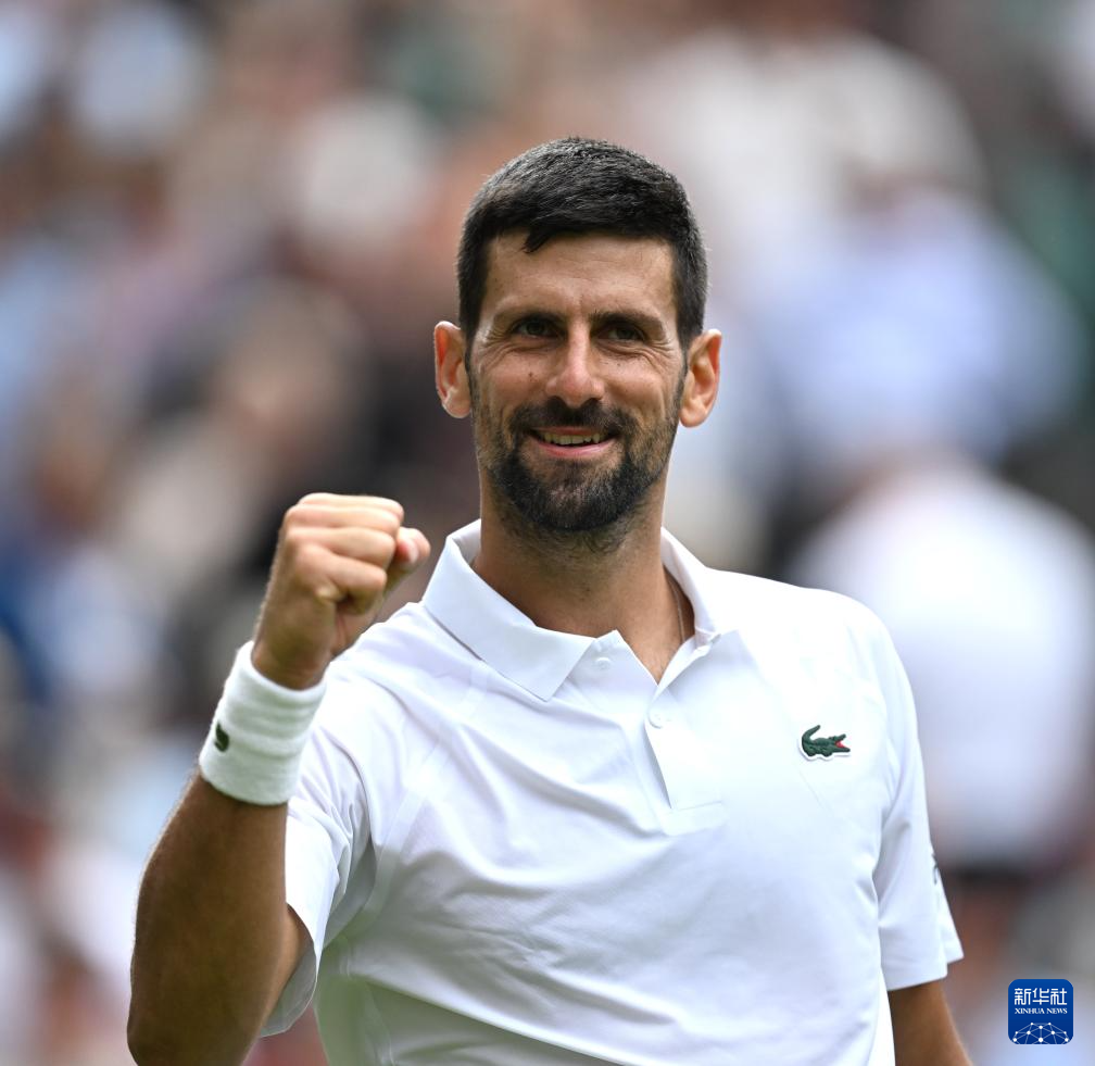 7月7日,焦科维奇在比赛后庆祝胜利。新华社记者 李颖 摄