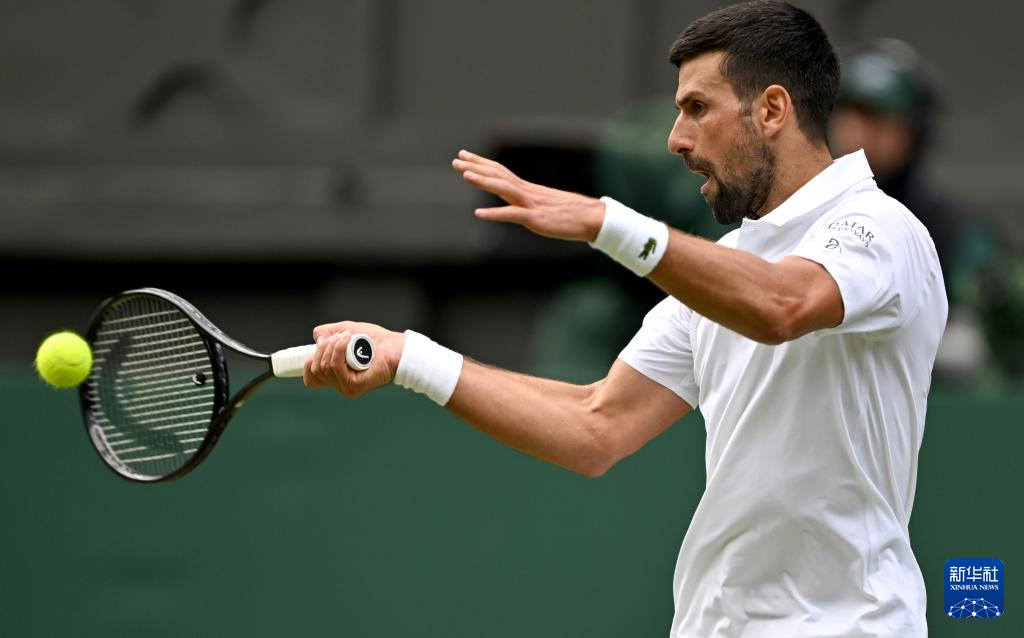 7月7日,焦科维奇在比赛中回球。新华社记者 李颖 摄