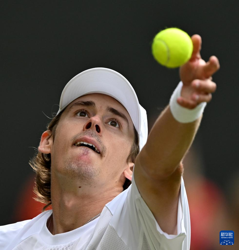 7月7日,德米纳尔在比赛中发球。新华社记者 李颖 摄
