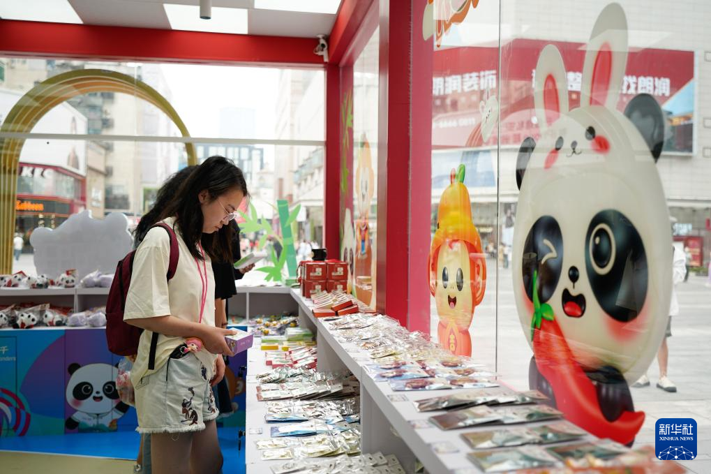 这是7月8日拍摄的位于成都春熙路的世运会官方特许商品零售店。新华社记者 胥冰洁 摄