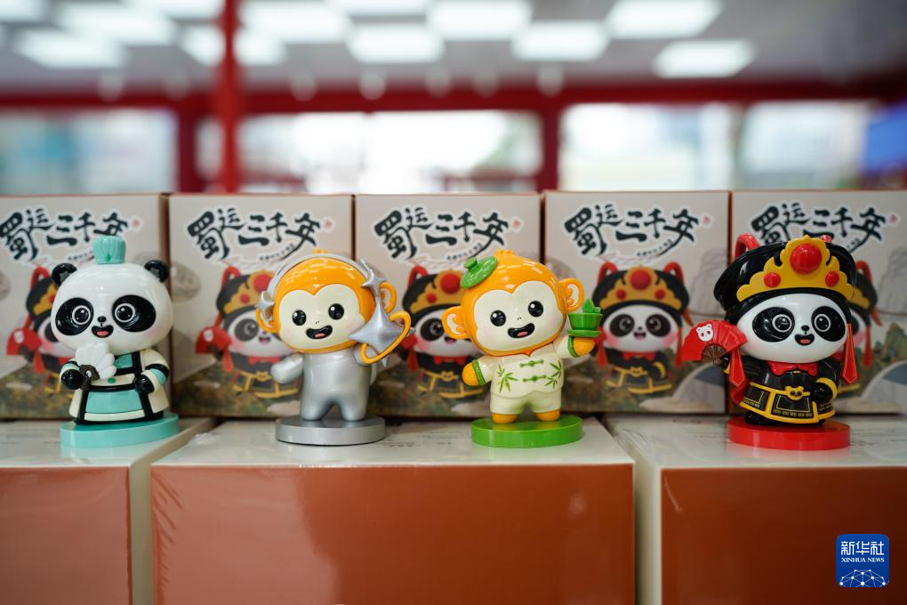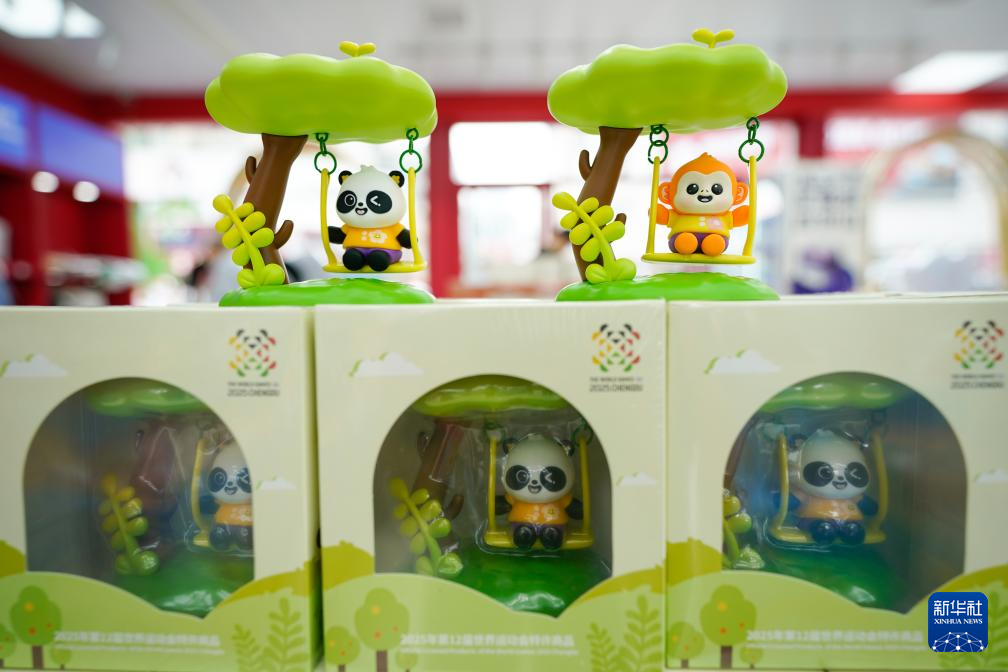 这是7月8日在位于成都春熙路的世运会官方特许商品零售店内拍摄的特许商品。新华社记者 胥冰洁 摄
