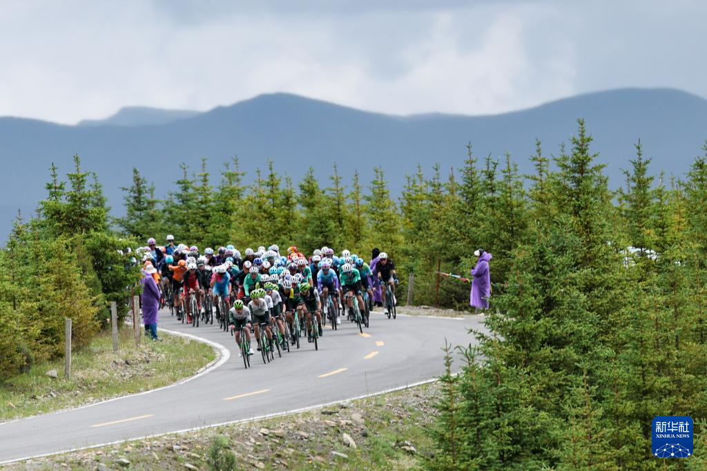 7月8日,参赛选手在比赛中骑行。新华社记者 张龙 摄