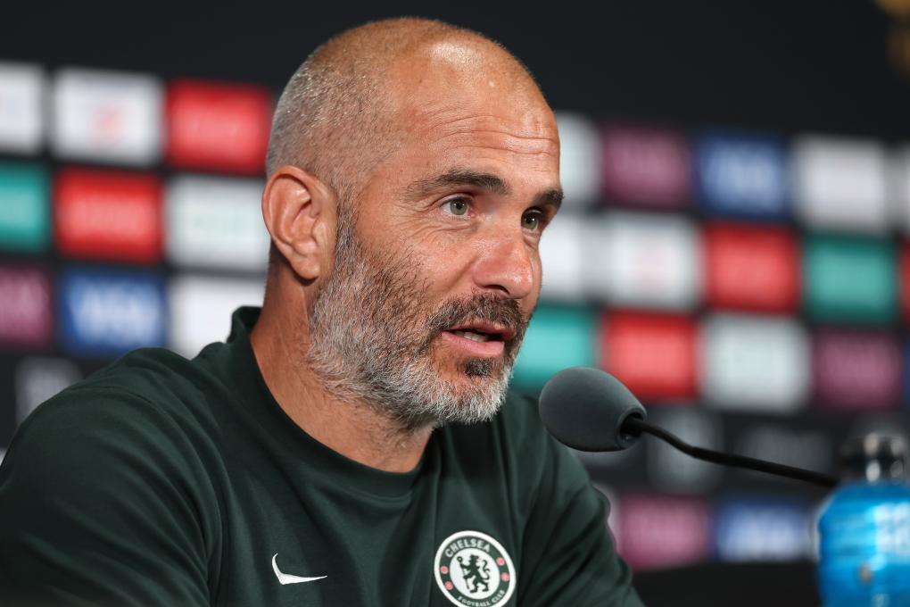切尔西主教练马雷斯卡在赛后新闻发布会上。图片来自国际足联官方图集