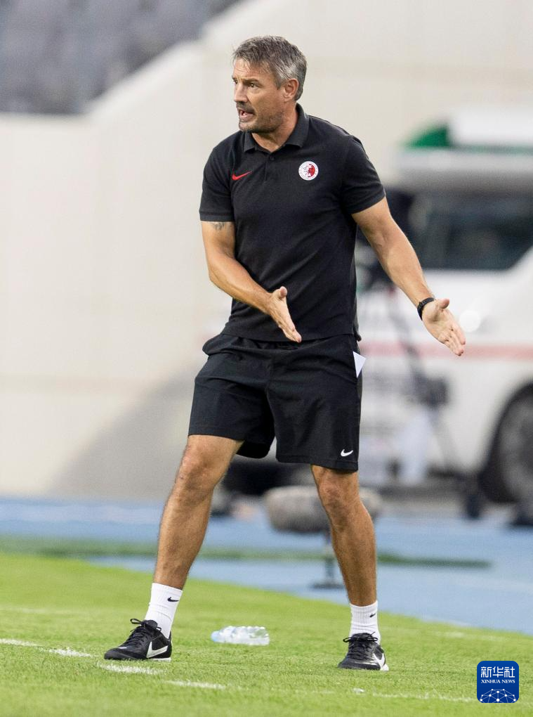 7月8日,中国香港队主教练韦斯特伍德在场边指挥。新华社发(全休相摄)