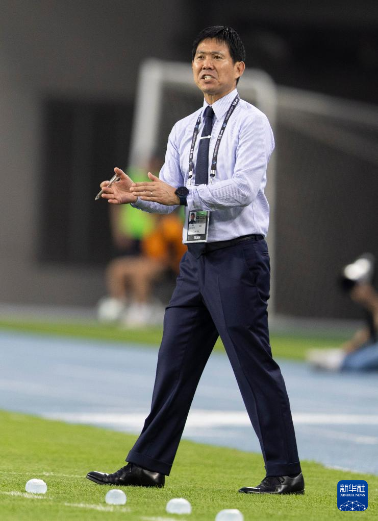 7月8日,日本队主教练森保一在场边指挥。新华社发(全休相摄)