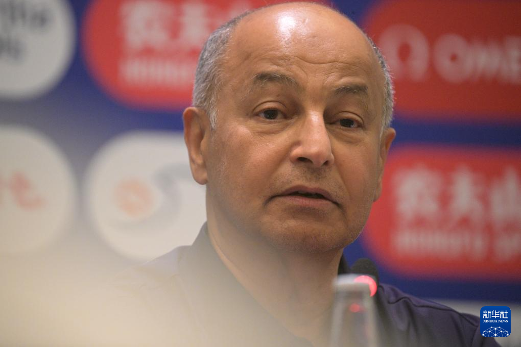 7月10日,世界泳联主席侯赛因·阿尔-穆萨拉姆出席赛前新闻发布会。新华社发(邓智炜摄)