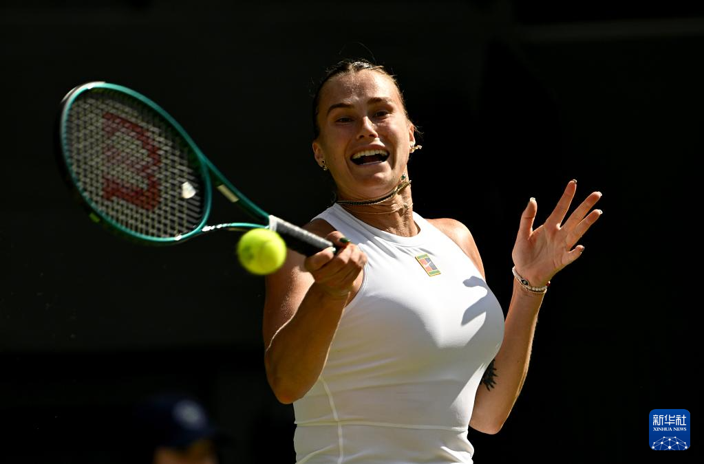 7月10日,萨巴伦卡在比赛中回球。新华社记者 李颖 摄
