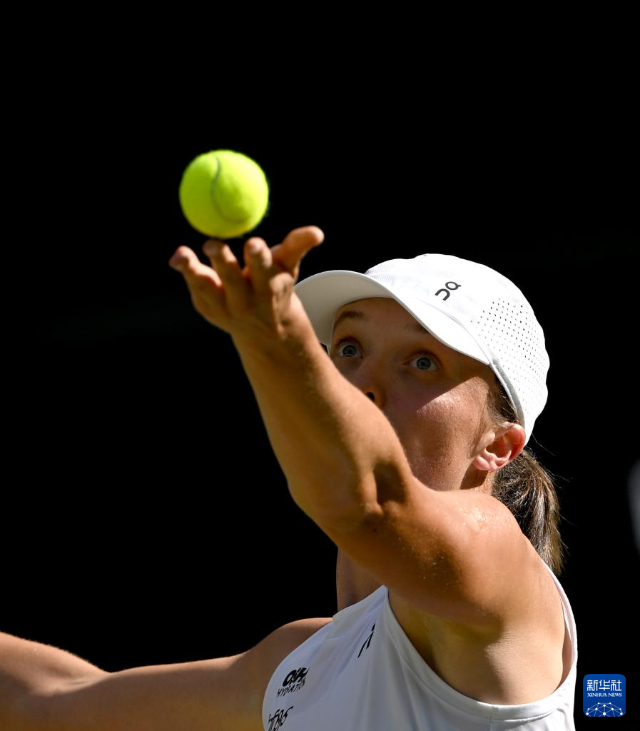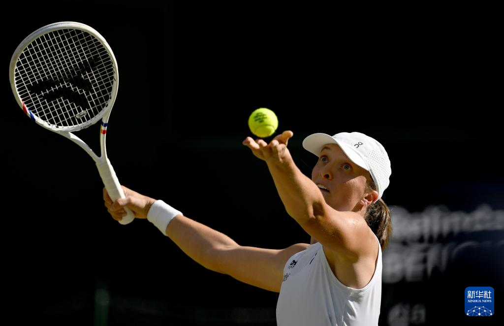 7月10日,斯维亚特克在比赛中发球。新华社记者 李颖 摄