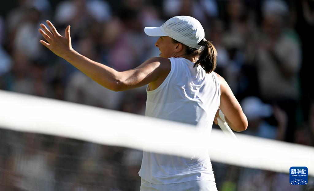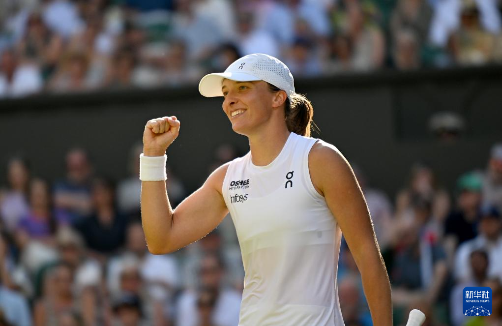 7月10日,斯维亚特克在比赛后庆祝。新华社记者 李颖 摄