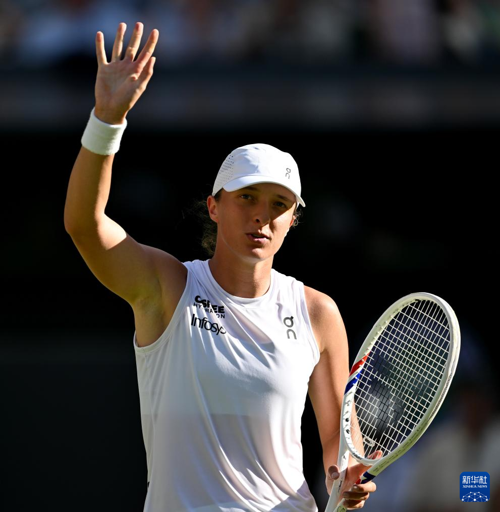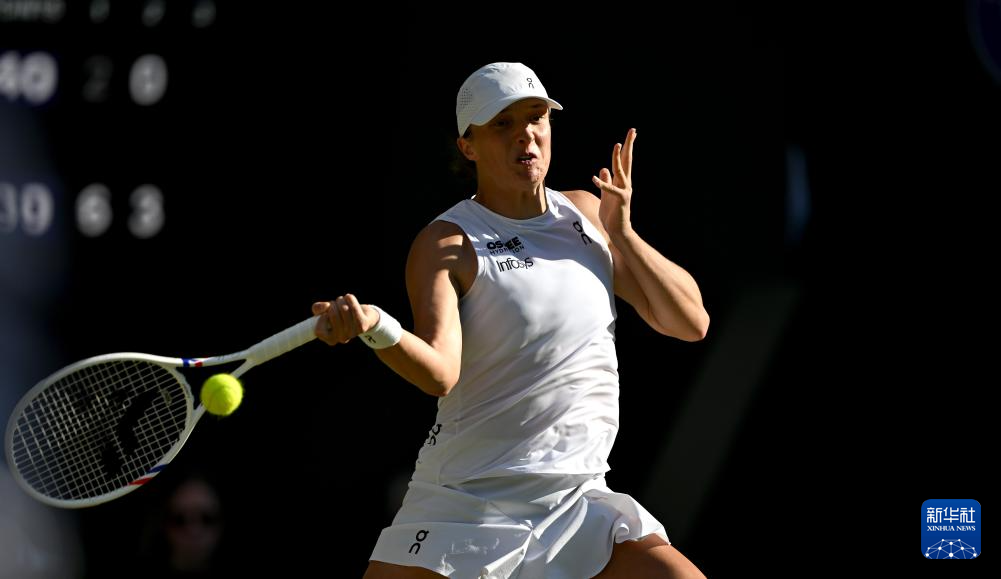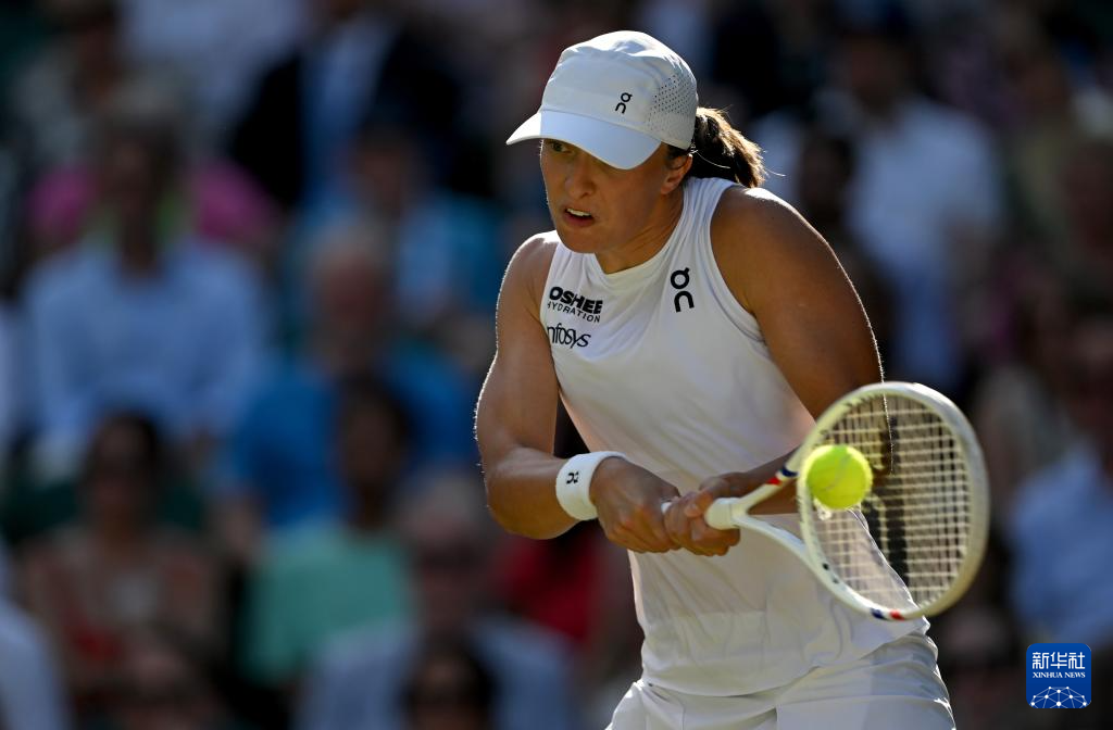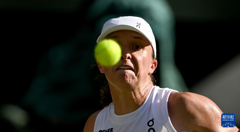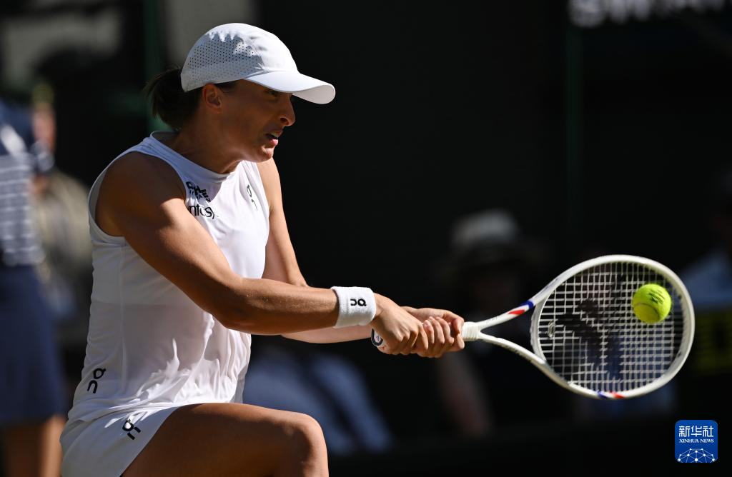 7月10日,斯维亚特克在比赛中回球。新华社记者 李颖 摄